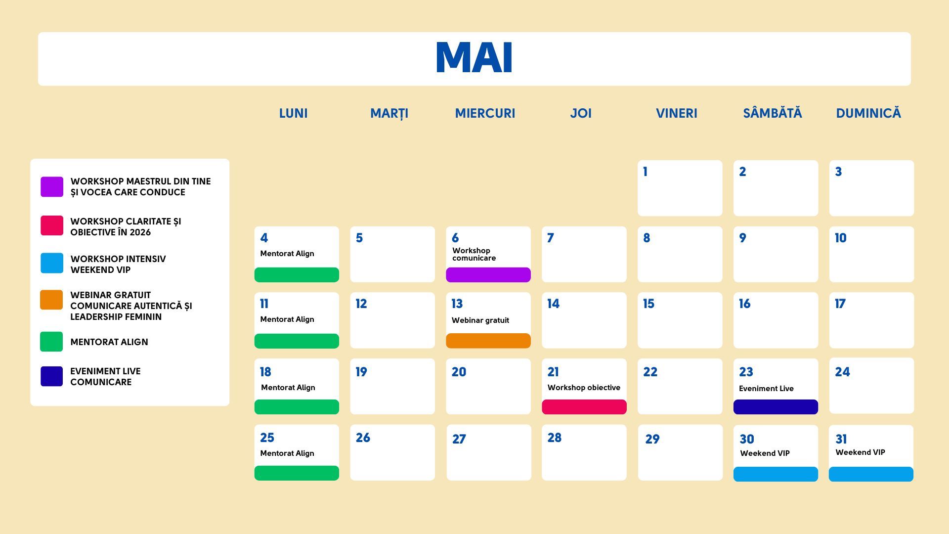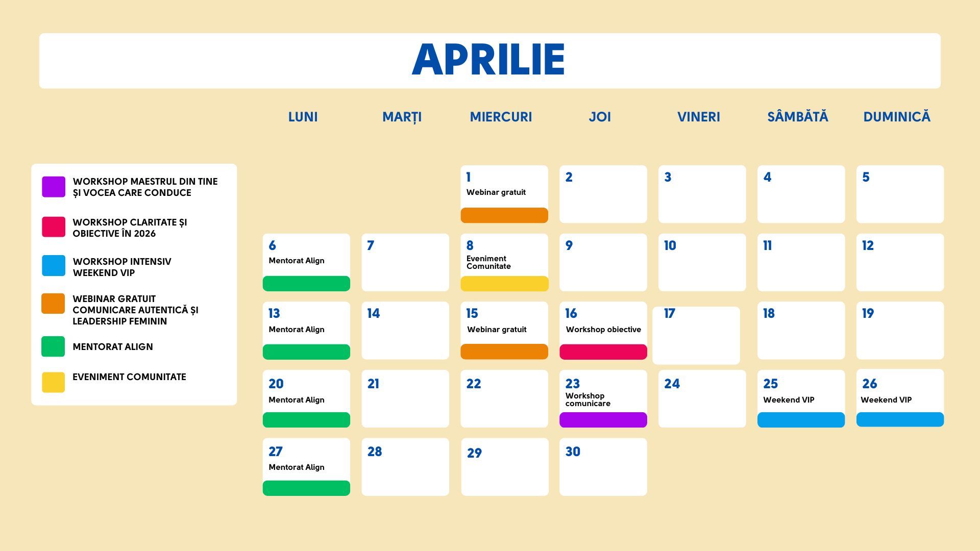 CALENDAR EVENIMENTE 2026 CU CORINA NECHITA