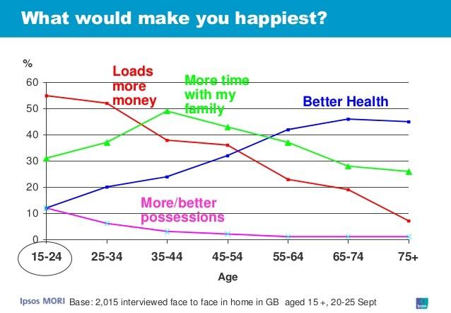 A study shows that based on our age we have different needs. Money is definitly not something that will make us happier on the long term. It certainty helps having stability and the life quality we wish, but your fulfillment will come from other places. We should be looking to improve our financial situation but also to find purpose.